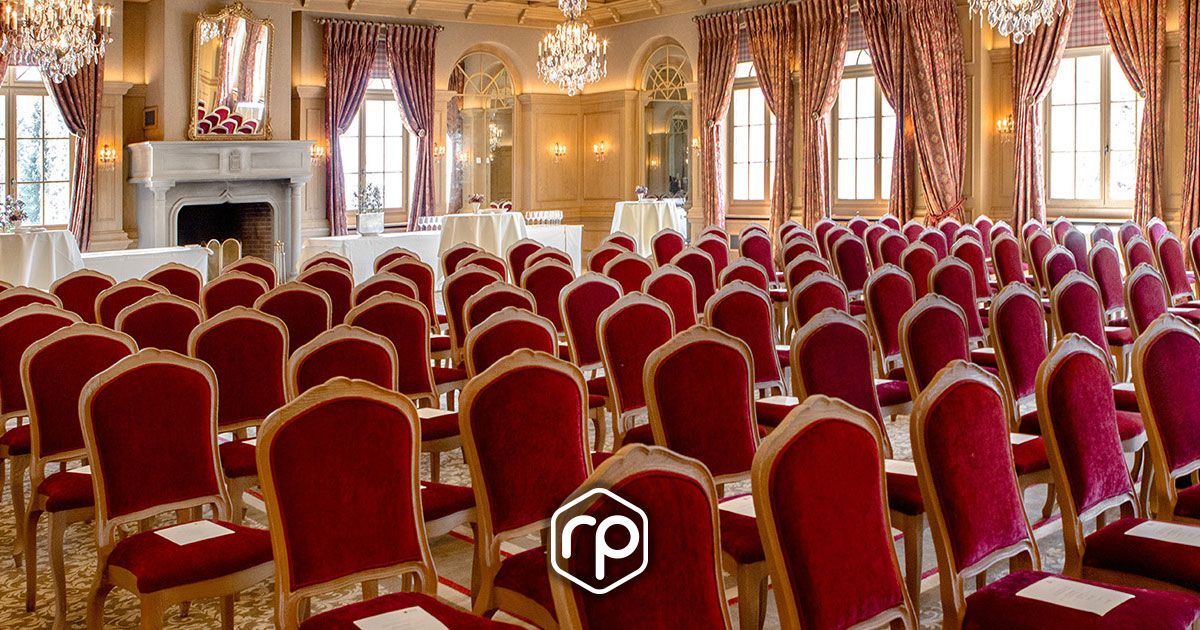 الغرفة المشرقة الكبيرة التي يمكن أن تستوعب ما يصل إلى 130 شخصًا ومقسمة إلى غرفتي اجتماعات.