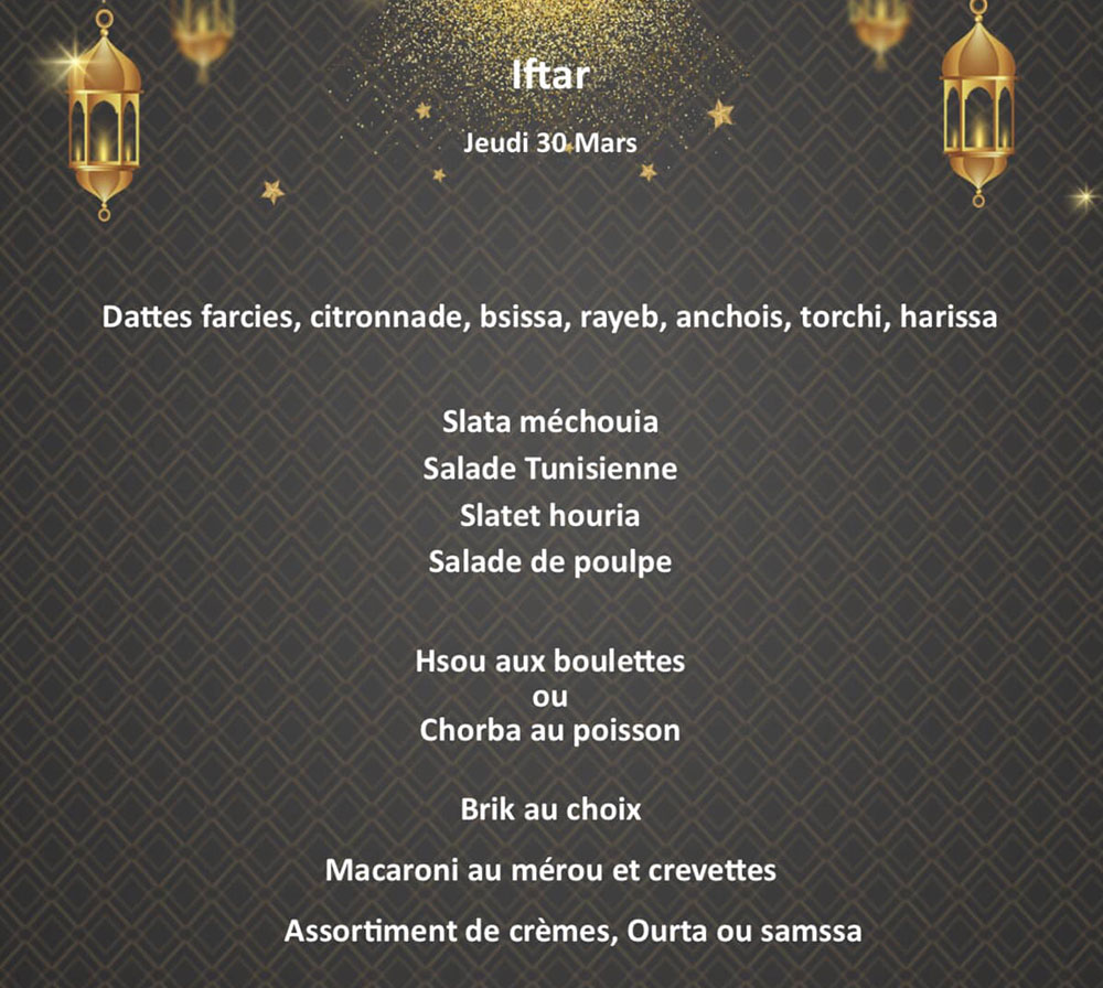 إفطار على قائمة الطعام يقدم في فندق موفنبيك سوسة - رمضان 2023