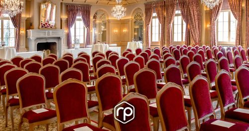 the large bright room, which can accommodate up to 130 people and is separated into two conference rooms.